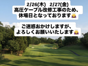 越前CC 高圧ケーブル改修工事のため、2/26.27はお休みとなっております。